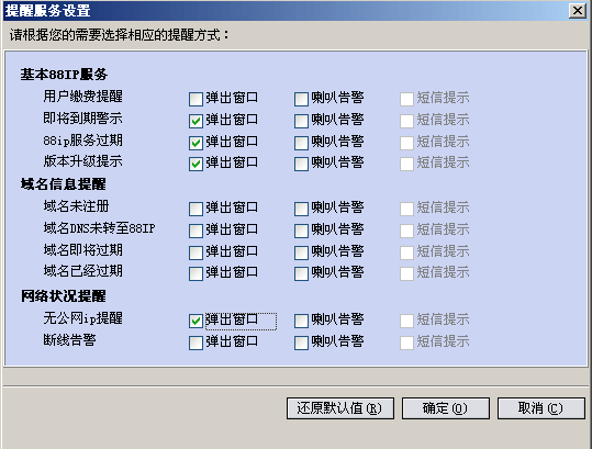可以看到設(shè)置88IP 客戶端的有3個(gè)復(fù)選項(xiàng):1)Windows 啟動(dòng)時(shí)自動(dòng)運(yùn)行,是指啟動(dòng)Windows 系統(tǒng)后,88IP 隨即啟動(dòng),無需系統(tǒng)啟動(dòng)后再手動(dòng)啟動(dòng)88IP 客戶端程序。2)以Windows 服務(wù)(Service )方式運(yùn)行,意即用戶可以把88IP 客戶端在基于WINDOWS NT 的系統(tǒng)上作為服務(wù)運(yùn)行,從而實(shí)現(xiàn)無需登錄WINDOWS 即可運(yùn)行88IP(推薦選擇此項(xiàng)) 。3)記住密碼,顧名思義,保存密碼信息于“密碼”框,省去重復(fù)輸入。