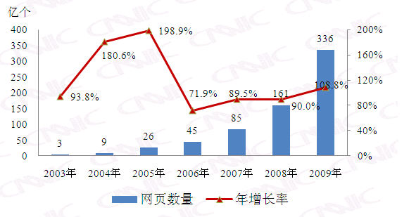 圖 6 2003-2009年中國網(wǎng)頁規(guī)模變化