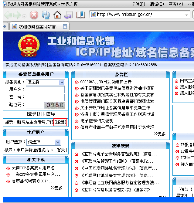 第一步:進(jìn)入工信部備案網(wǎng)站www.miibeian.gov.cn ,點擊〖注冊〗