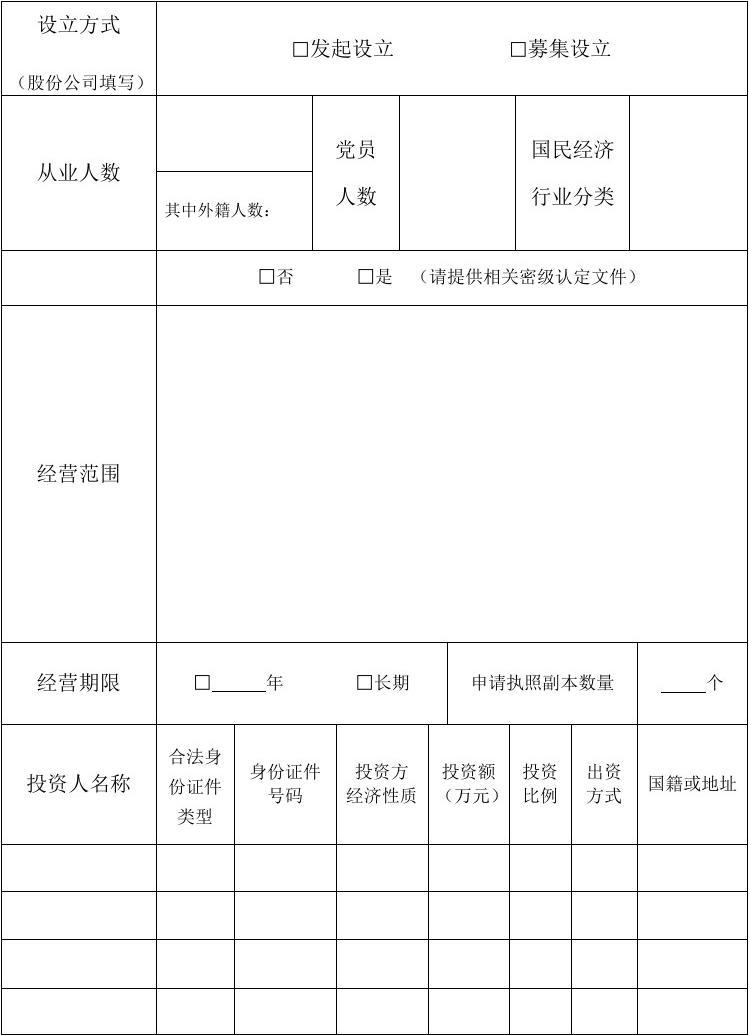 企業(yè)三證合一登記申請(qǐng)表