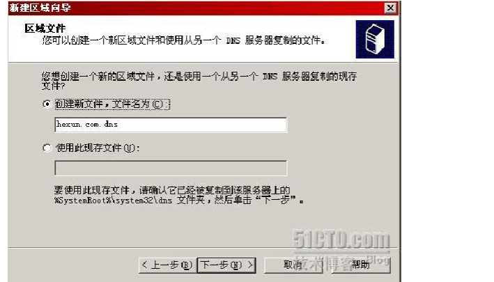 區(qū)域數(shù)據(jù)文件是hexun.com.dns ,區(qū)域內(nèi)的所有記錄都存儲在這個文件里,注意,這個文件我們以后會用到的。
