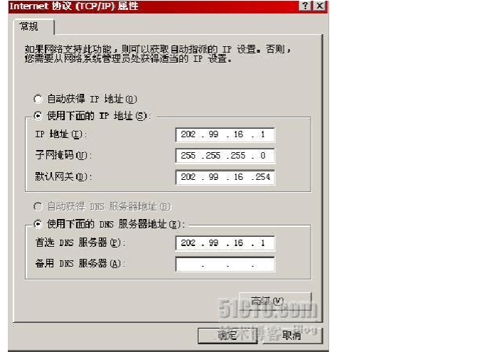 首先我們要在服務(wù)器上安裝DNS 組件,服務(wù)器的TCP/IP配置如下圖所示。