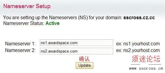 6. 點擊“Domain Manager”進入,在方框中填你注冊的CO.CC 域名或者CZ.CC 域名,點擊確認,登錄CO.CC 或者CZ.CC 的控制面板修改DNS ,如下圖。