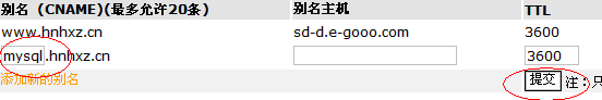 點(diǎn)擊添加新的別名,前面寫WWW ,然后提交,如以后想修改可以點(diǎn)后面的修改或刪除再添加,其它的也一樣。