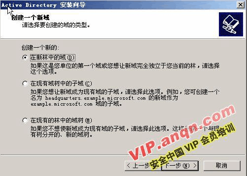 5) 在“創(chuàng)建一個新域”中選擇“在新林中的域”。