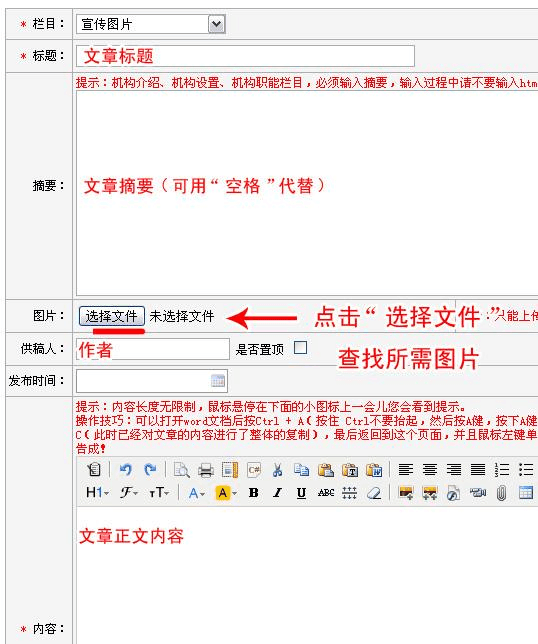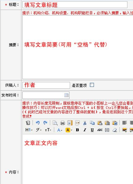 3.按提示填寫內(nèi)容,然后點擊下方“提交”按鈕,最后確定不再添加或編輯新文章,直接點右上角的“紅叉”即可,內(nèi)容自動保存,如圖: