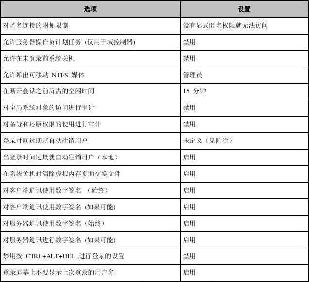 位于組策略對(duì)象“安全設(shè)置”節(jié)點(diǎn)的容器包括:賬戶策略、本地策略、事件日志、受限組、系統(tǒng)服務(wù)、注冊(cè)表、文件系統(tǒng)、公鑰策略、Active Directory中的網(wǎng)際協(xié)議安全策略等。具體的設(shè)置在本標(biāo)準(zhǔn)的相應(yīng)章節(jié)中詳細(xì)說(shuō)明。