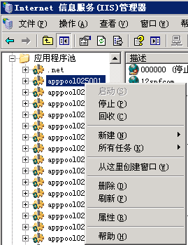 打開IIS 管理器,展開應用程序池,對相對應的應用程序池單擊右鍵進行回收