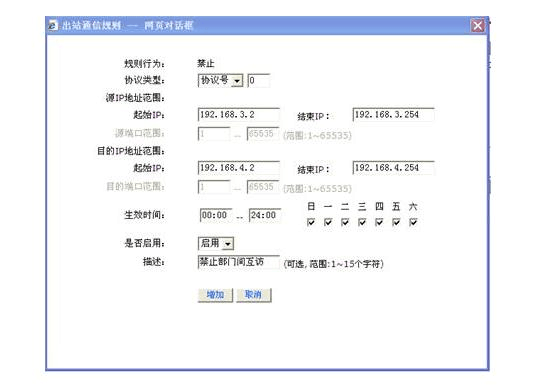 禁止源地址范圍為192.168.3.2-192.168.3.254訪問(wèn)目的地址范圍為