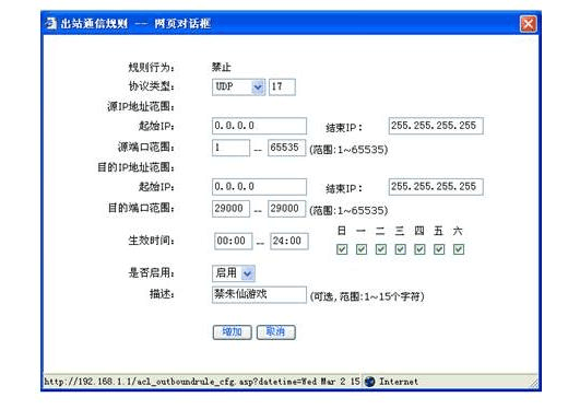 (2) 設(shè)置出站通訊策略:添加如下規(guī)則,禁止所有IP 發(fā)往目的端口為29000的UDP 報(bào)文通過(guò)(頁(yè)