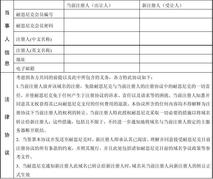耐思尼克域名轉(zhuǎn)讓協(xié)議