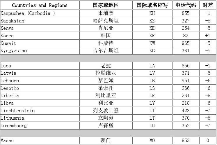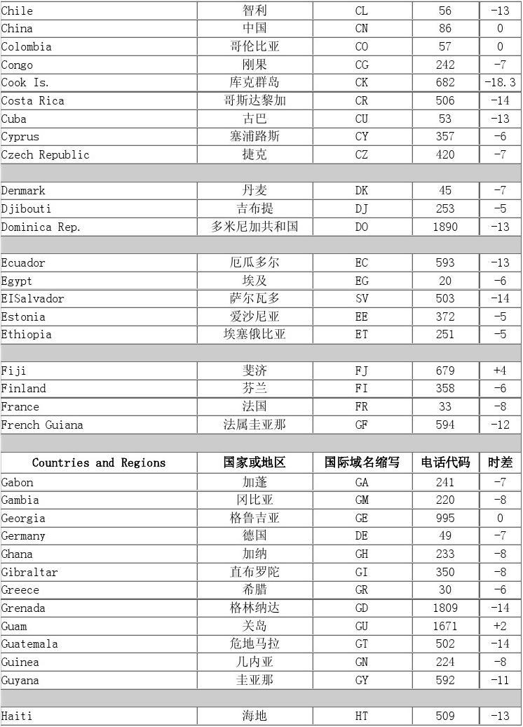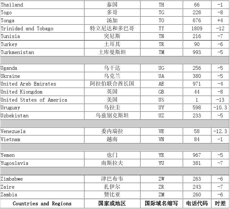 各國(guó)時(shí)差