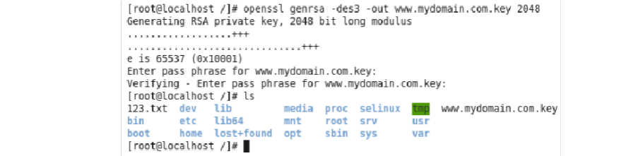 使用以下命令來生成私鑰:opensslgenrsa -des3 -out www.mydomain.com.key 2048,生成的私鑰保存在當(dāng)期目錄。