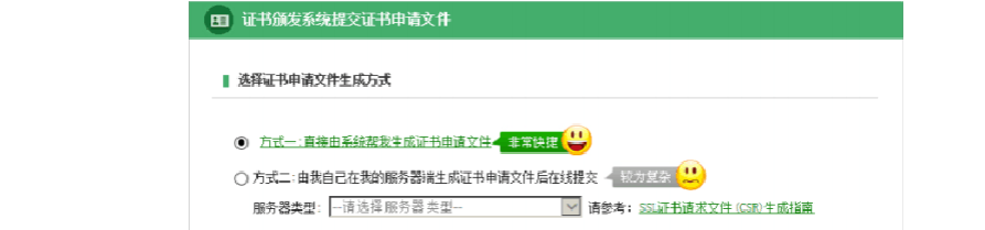 選擇證書申請文件生成方式二,提交生成的csr 文件,如下圖所示,然后確認(rèn)訂單信息。