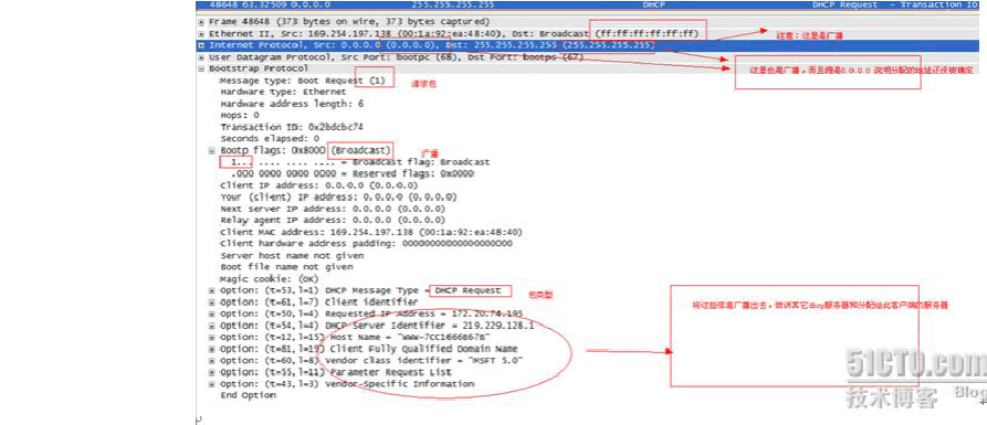 DHCP discover發(fā)現(xiàn)信息來尋找DHCP 服務器,即向地址255.255.255.255發(fā)送特定的廣播信息。網(wǎng)絡上每一臺安裝了TCP/IP協(xié)議的主機都會接收到這種廣播信息,但只有DHCP 服務器才會做出響應。