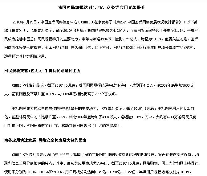 我國目前上網(wǎng)用戶總數(shù)4.2億人;