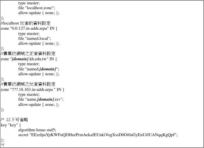 有關(guān)bind9.x 系列之設(shè)定手冊(cè)在http://www.nominum.com/resources/documentation/Bv9ARM.pdf 可取得英文之電子文件檔案,可提供您進(jìn)一步的詳細(xì)資料。