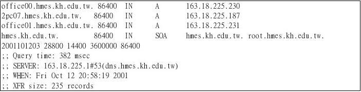 (2) NS :名稱伺服器﹐也就是該zone 指定的DNS 伺服器名稱。
