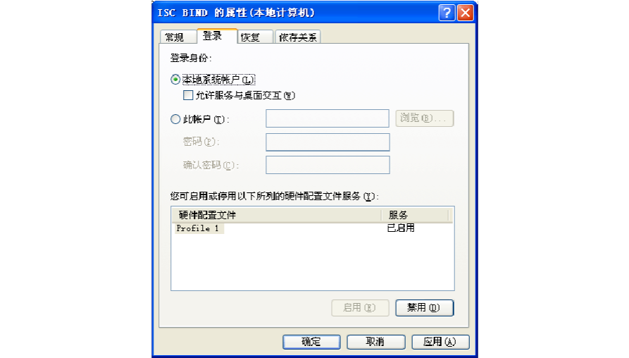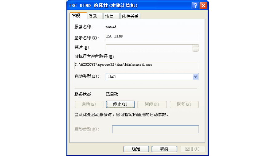 4、打開服務。開始—運行—services.msc ,找到ISC BIND ,雙擊,并按如下設置(配置完就可以啟動該服務了,確認下啟動類型為自動:)
