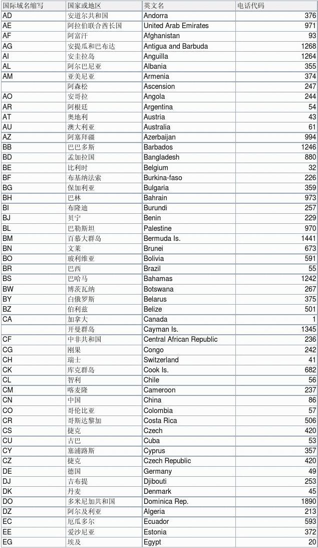 國家代碼與域名縮寫