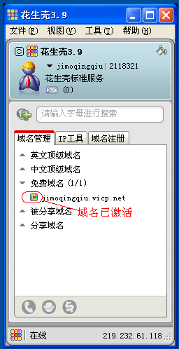至此花生殼的使用任務(wù)已完成。下面以實(shí)例來說明花生殼(域名)的使用:
