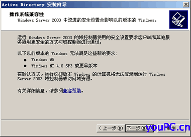Windows Server 2003 的域網(wǎng)絡(luò)不支持 Windows 95、Windows NT 4.0 或更早的系統(tǒng)進(jìn)行訪問。