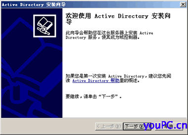 單擊“下一步”,打開“Active Directory 安裝向?qū)А?/p>